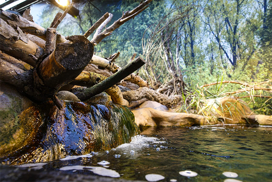 Différents dispositifs de médiation viennent compléter cette présentation et apporter des informations sur l’évolution des espèces, le cycle de l’eau ou encore les différents biotopes traversés.